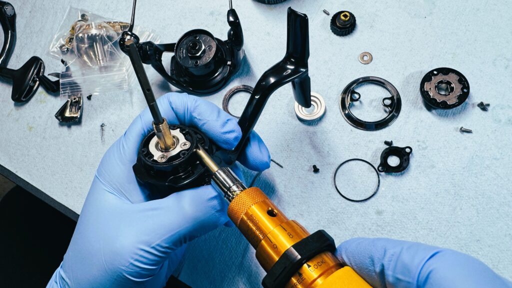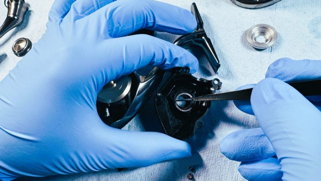 リールはまず分解前に状態を細かく確認し、適切な手順で分解を進めます。